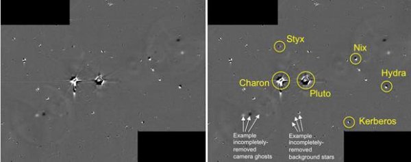 По словам исследователей, они не обнаружили на снимках системы Плутона новых спутников или колец вокруг них. Это позволило инженерам НАСА 2 июля дать последнюю команду перед сближением New Horizons с карликовой планетой, что привело ко включению двигателя для обеспечения планового маневра.