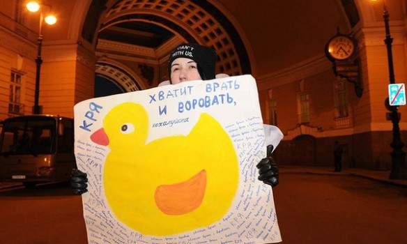 Петербуржцы вышли на митинг с уточками и потребовали отставки Медведева